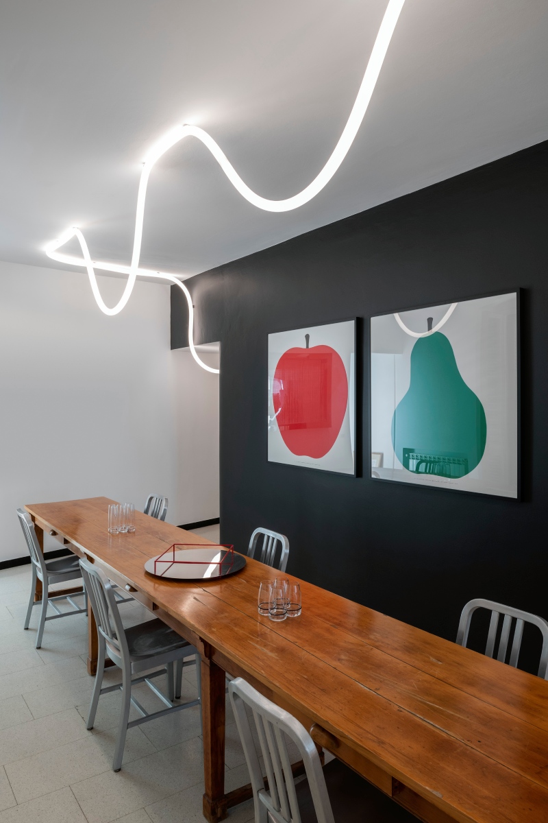 To La Linea είναι ένας εύκαμπτος σωλήνας φωτός, ικανός να περιστρέφεται ελεύθερα στον χώρο σχηματίζοντας διαφορετικά απροσδιόριστα γεωμετρικά σχήματα. Ταιριάζει εύκολα τόσο σε εσωτερικούς, όσο και σε εξωτερικούς χώρους. Χάρη στον πρωτοποριακό σχεδιασμό και την τεχνολογία του, έχει αποσπάσει το Wallpaper Design Award 2020, καθώς και το Archiproducts Design Award 2019.