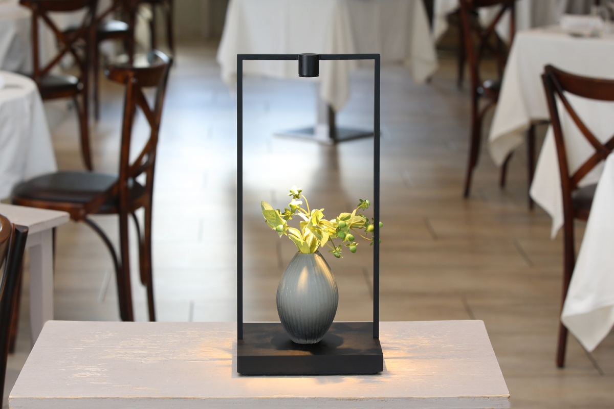 Η φωτεινή πηγή από led καλύπτεται από μία σφαίρα οπαλίνας που διαχέει ευχάριστα το φως, ενώ η βάση του φωτιστικού μπορεί να χρησιμοποιηθεί σαν βάθρο τοποθέτησης διακοσμητικών μικροαντικειμένων ή αξεσουάρ σερβιρίσματος. Διαθέτει 3 σκάλες φωτισμού και μπαταρία αυτονομίας μέχρι και 8 ώρες.