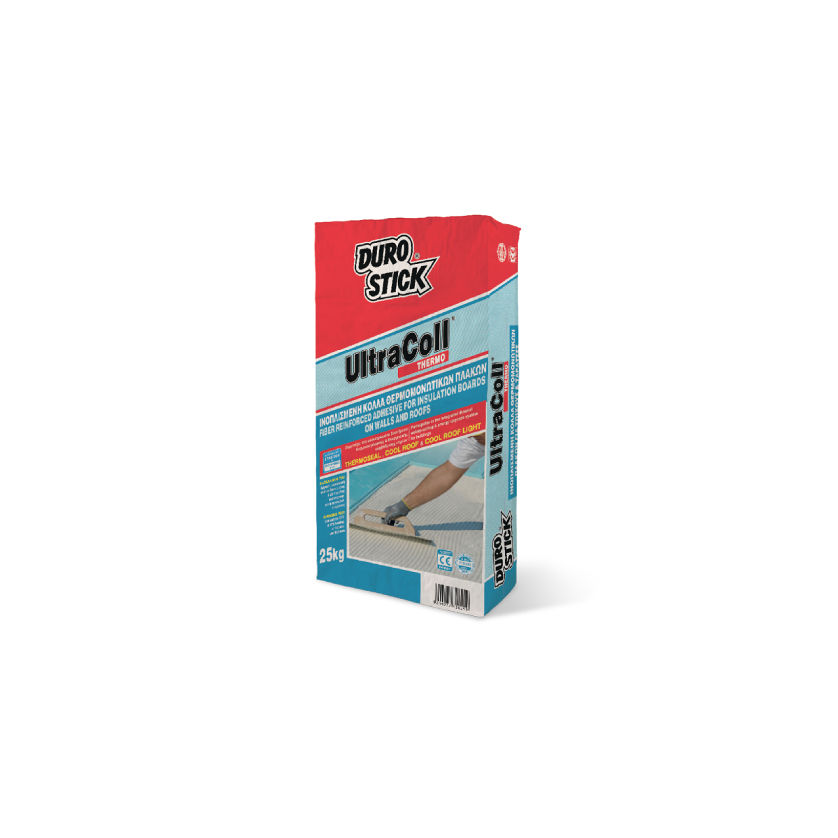 Ινοπλισμένη, τσιμεντοειδούς βάσης κόλλα, ενισχυμένη με ρητίνες, οι οποίες της προσδίδουν ιδιαίτερη ευκαμψία και αντοχή στην υγρασία. Παρέχει υψηλή πρόσφυση και συγκολλητική δύναμη σε θερμομονωτικές πλάκες διογκωμένης (EPS) ή εξηλασμένης (XPS) πολυστερίνης, πολυουρεθάνης, φελλού κ.ά., σε τοιχία από μπετόν, σοβά, τούβλα ή τσιμεντόλιθους. Eίναι κατάλληλη τόσο για την επικόλληση των θερμομονωτικών πλακών στις όψεις των κτιρίων, όσο και για την επίχρισή τους, σε συνδυασμό με το υαλόπλεγμα οπλισμού θερμοπροσόψεων DS-4160 της DUROSTICK. Η κόλλα αποτελεί μέρος τού Πιστοποιημένου Συστήματος Εξωτερικής Θερμομόνωσης Κτιρίων THERMOSEAL της DUROSTICK, και είναι σε συμμόρφωση με τις απαιτήσεις της EAD 040083-00-0404, ΕΤΑ 13/0006 και ΕΤΑ 13/0007. Συνιστάται και για τα συστήματα θερμοστεγάνωσης ταρατσών COOL ROOF και COOL ROOF LIGHT, δημιουργώντας έτσι ένα δοκιμασμένο θερμομονωτικό και παράλληλα στεγανοποιητικό σύστημα, με μεγάλη διάρκεια ζωής. Κατατάσσεται στην κατηγορία GP:CS IV/W2 κατά ΕΝ 998-1.