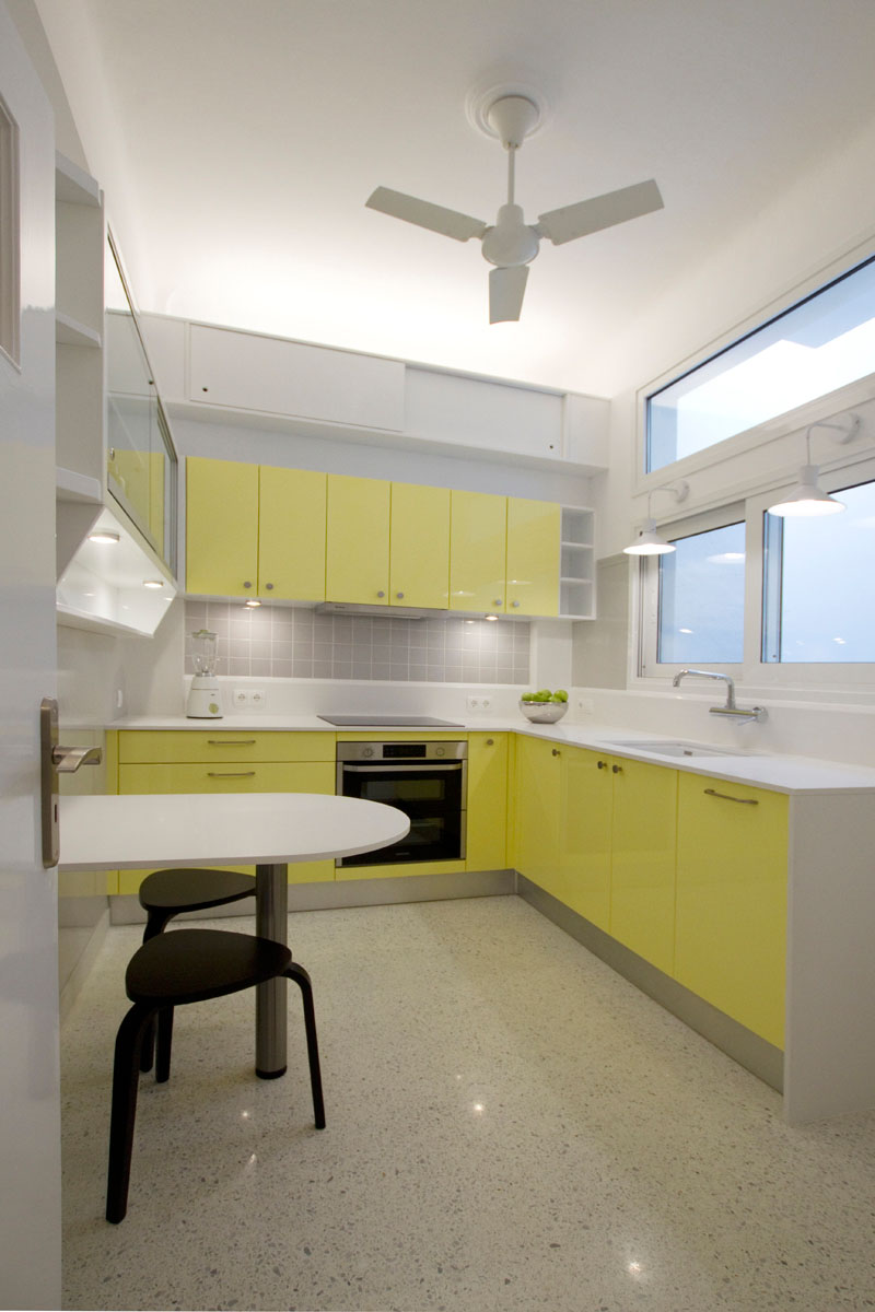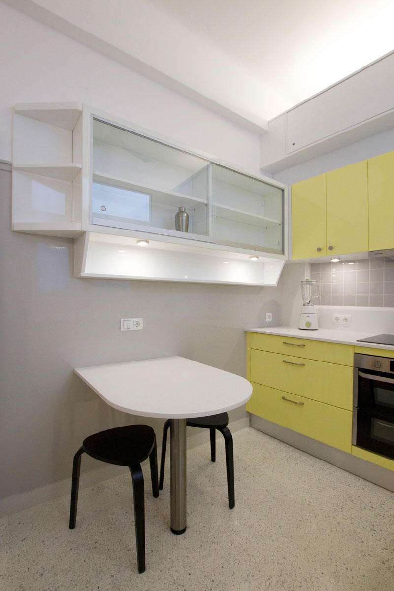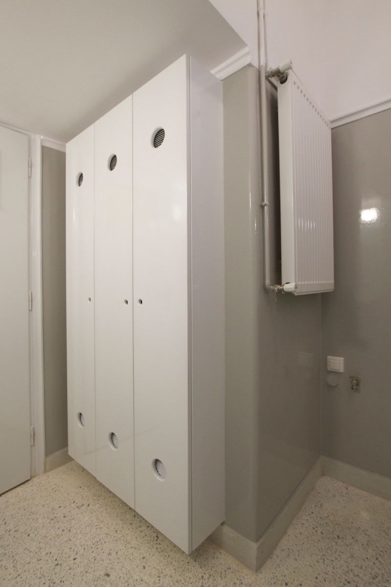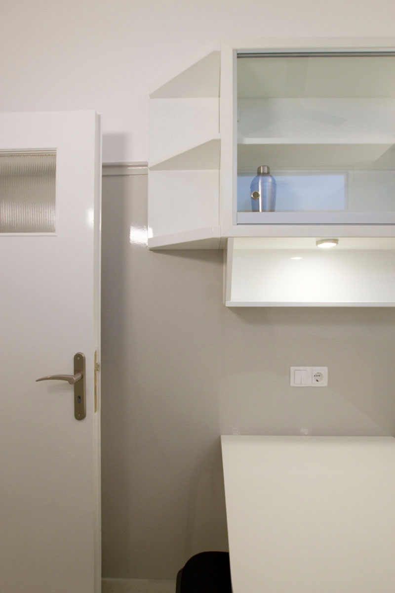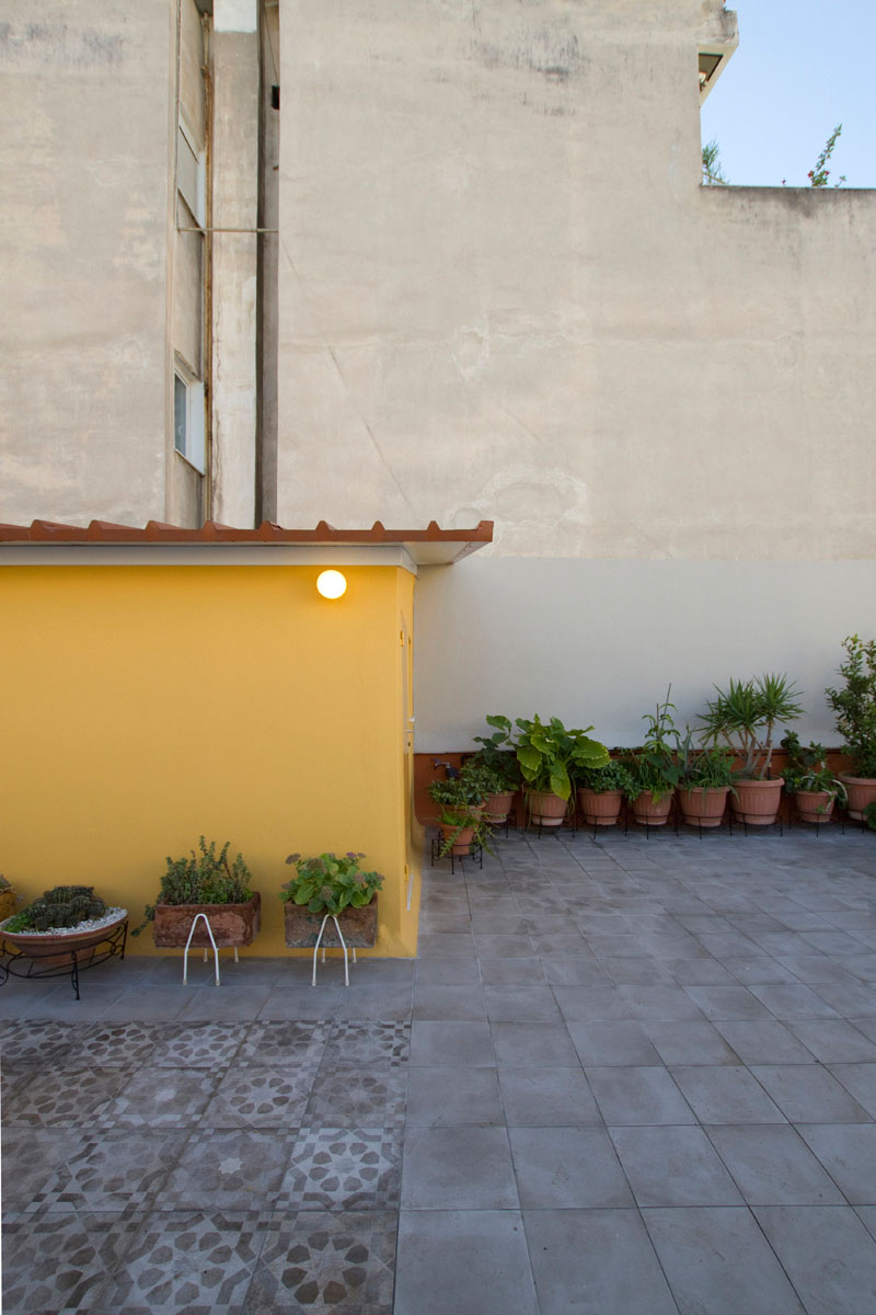 We have completely renovated the apartments, including the roof floor, which is regularly used as an open-air lounging area, as well as the stairwell and the façades. We renewed all electrical installations, sewage and water supply lines and renovated all bathrooms and kitchens. We preserved and repaired all marble and terrazzo surfaces, as well as all original wooden doors and floors. After replacing all water lines, we applied new terrazzo flooring to the bathrooms and kitchens.