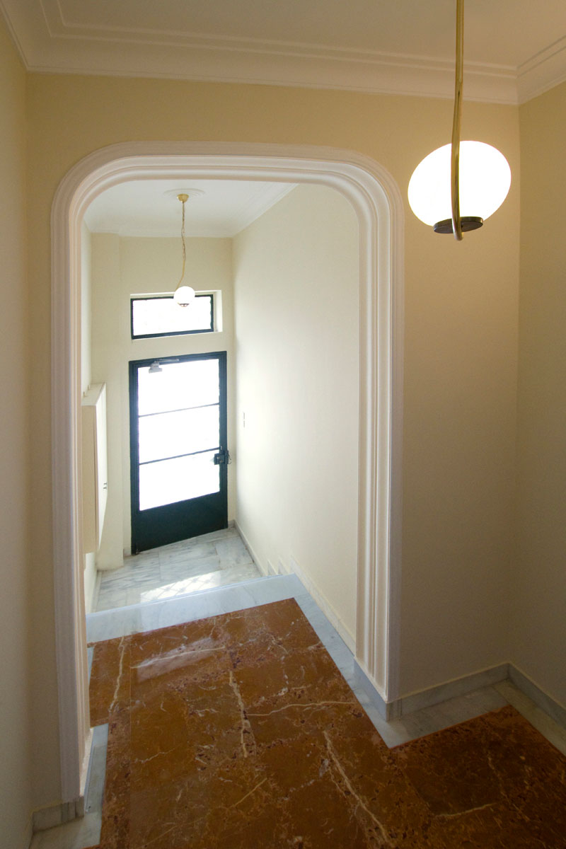 Αποκαταστήσαμε πλήρως τα υφιστάμενα μάρμαρα στην είσοδο και το κλιμακοστάσιο.