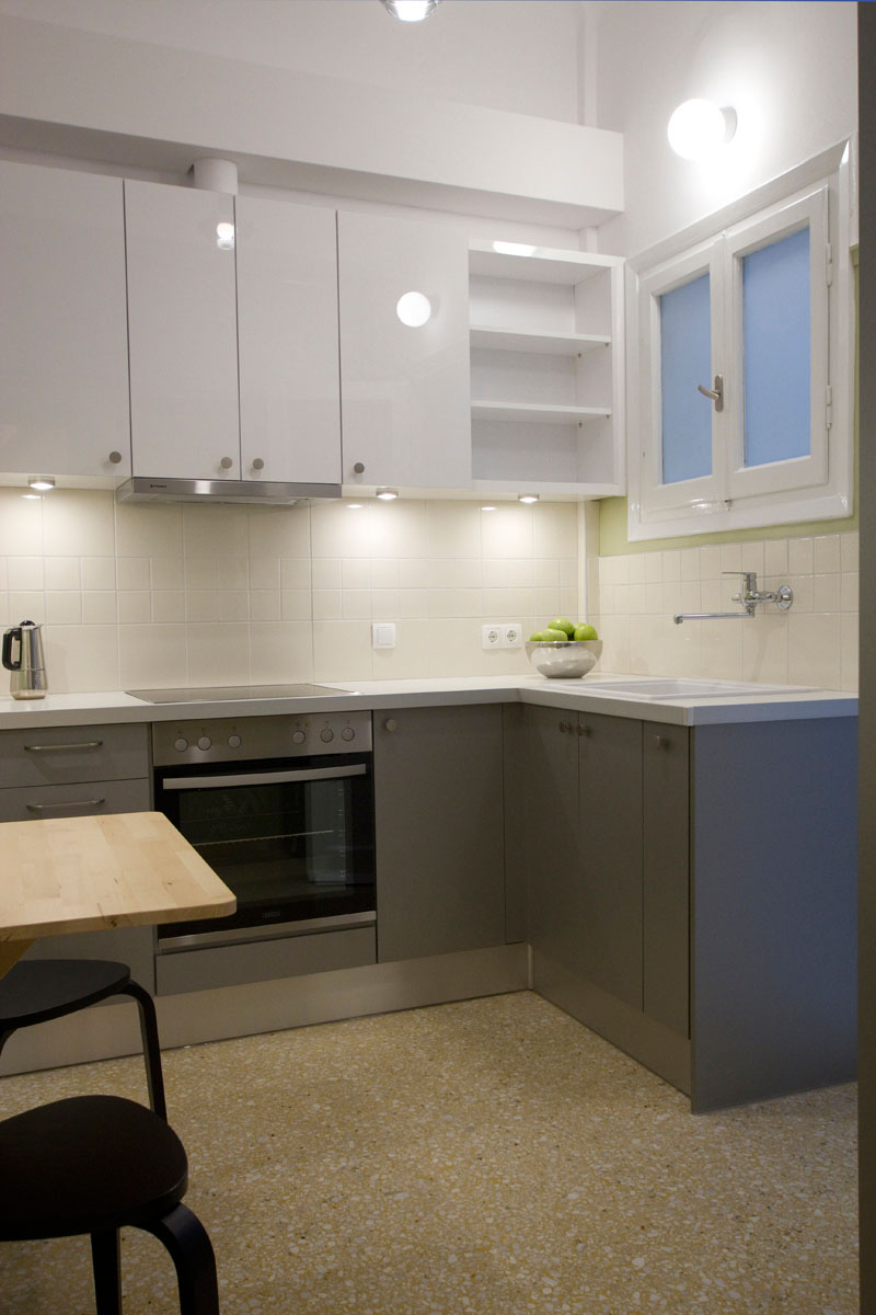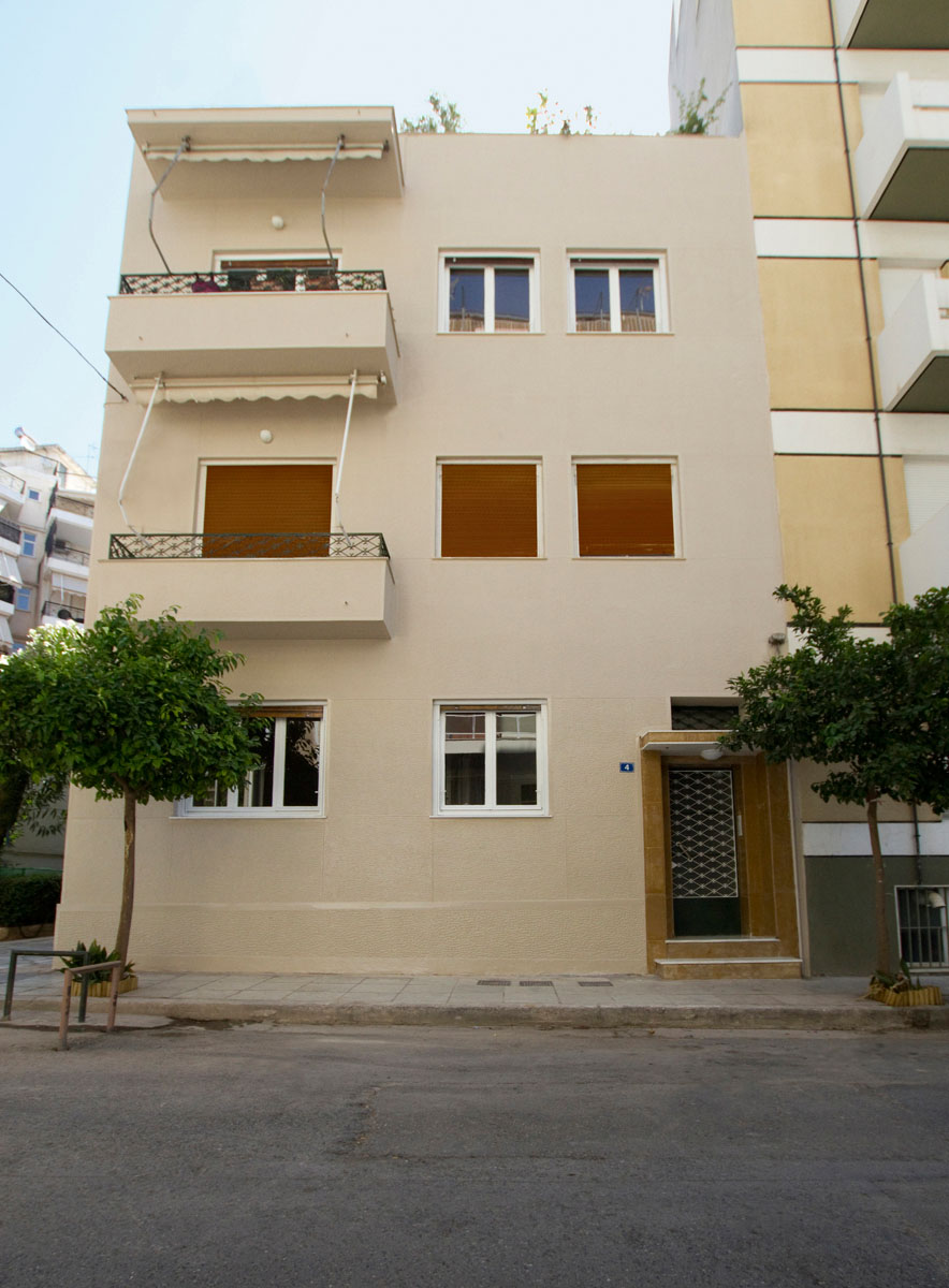 This three-storey apartment building is located near the historical sanatorium “Ásylon Aniáton” in the district of Athens Kypseli.