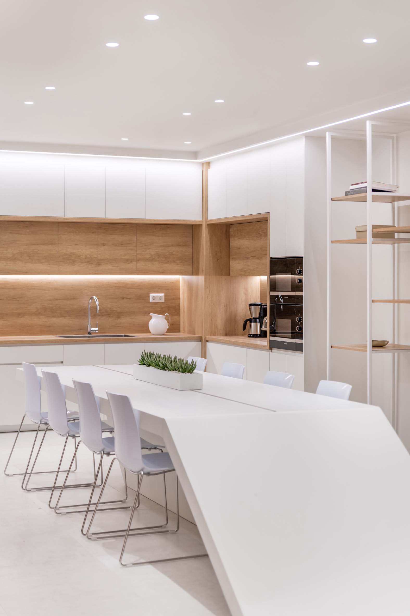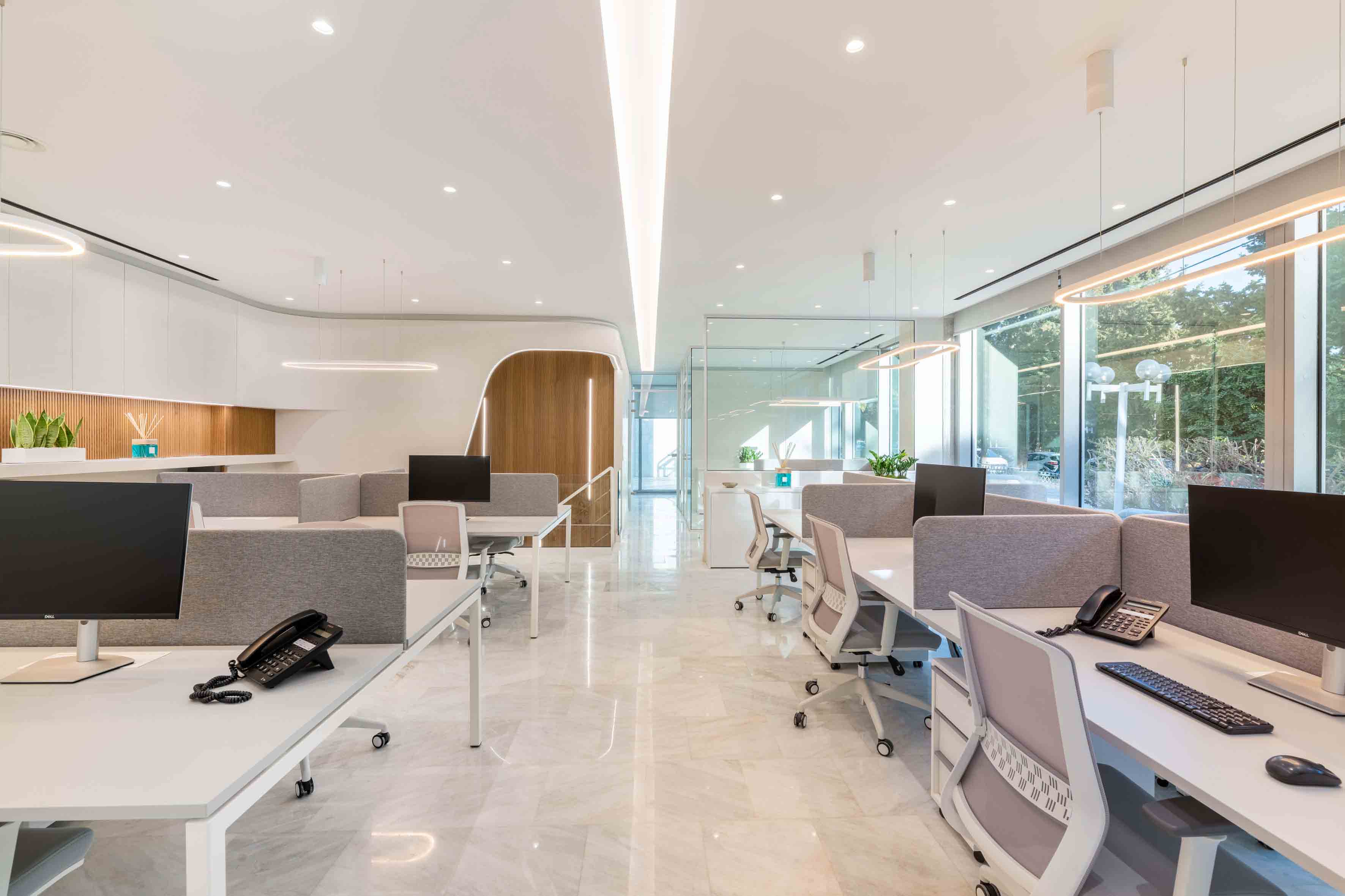 Η δημιουργία μιας συνεχούς οπτικής ροής στο χώρο, η προσοχή στις αρχιτεκτονικές λεπτομέρειες των εσωτερικών όψεων και οι συνειδητά περιορισμένες εναλλαγές στην υλικότητα συνθέτουν έναν δυναμικό σύγχρονο ζεστό χώρο γραφείων με άριστο περιβάλλον και ισχυρή αρχιτεκτονική ταυτότητα.
