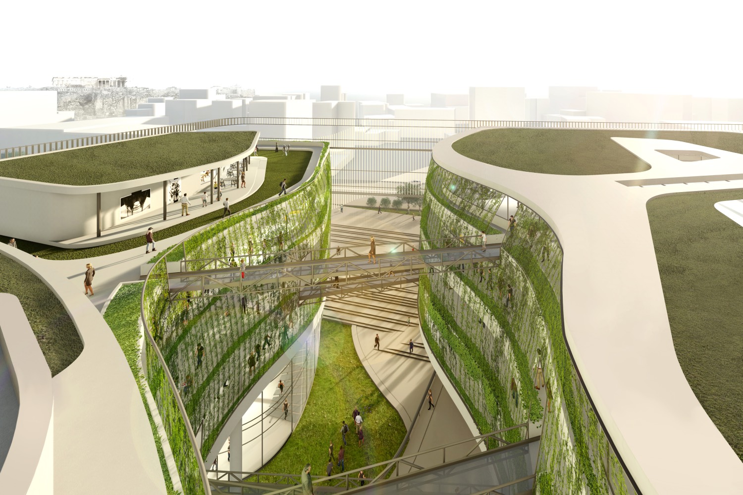 Στο φυτεμένο δώμα δημιουργείται πολιτιστικός υπαίθριος χώρος προσβάσιμος από το κοινό, συσχετισμένος με εστιατόριο και "κήπο των τεχνών", ο οποίος θα διαθέτει το σημαντικότατο προνόμιο θέασης του βράχου της Ακρόπολης προς τη μια πλευρά, και του Πειραιά προς την άλλη.